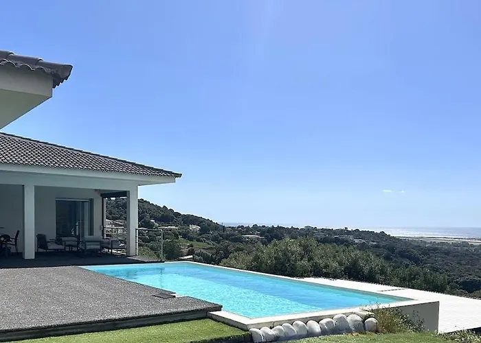 De 3-slaapkamer Magnifique Villa Vue Mer, Piscine, 190 M2, 4 Chb, 3 Sdb, Clim Bastelicaccia ligt op 3 km van Monte Aragnascu en biedt toegang tot toeristische plekken in de omgeving.